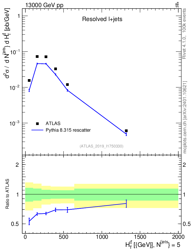 Lines: data, pythia8 8.315 rescatter |
