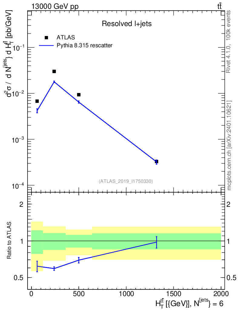 Lines: data, pythia8 8.315 rescatter |