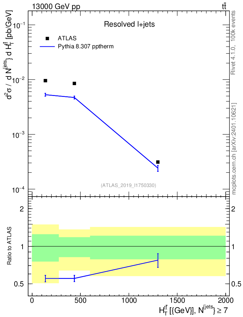 Lines: data, pythia8 8.307 pptherm |
