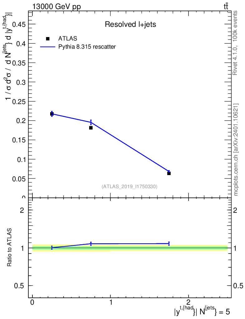Lines: data, pythia8 8.315 rescatter |