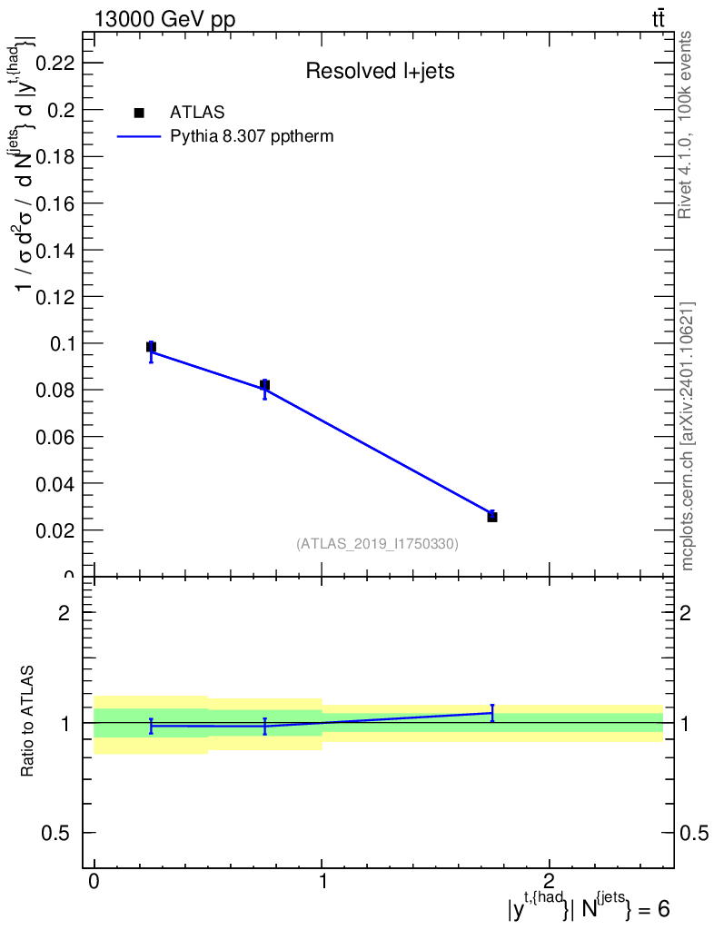 Lines: data, pythia8 8.307 pptherm |
