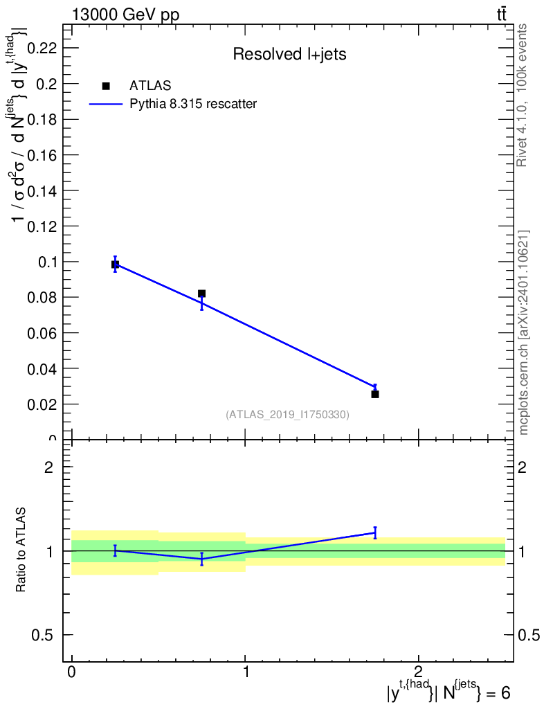 Lines: data, pythia8 8.315 rescatter |