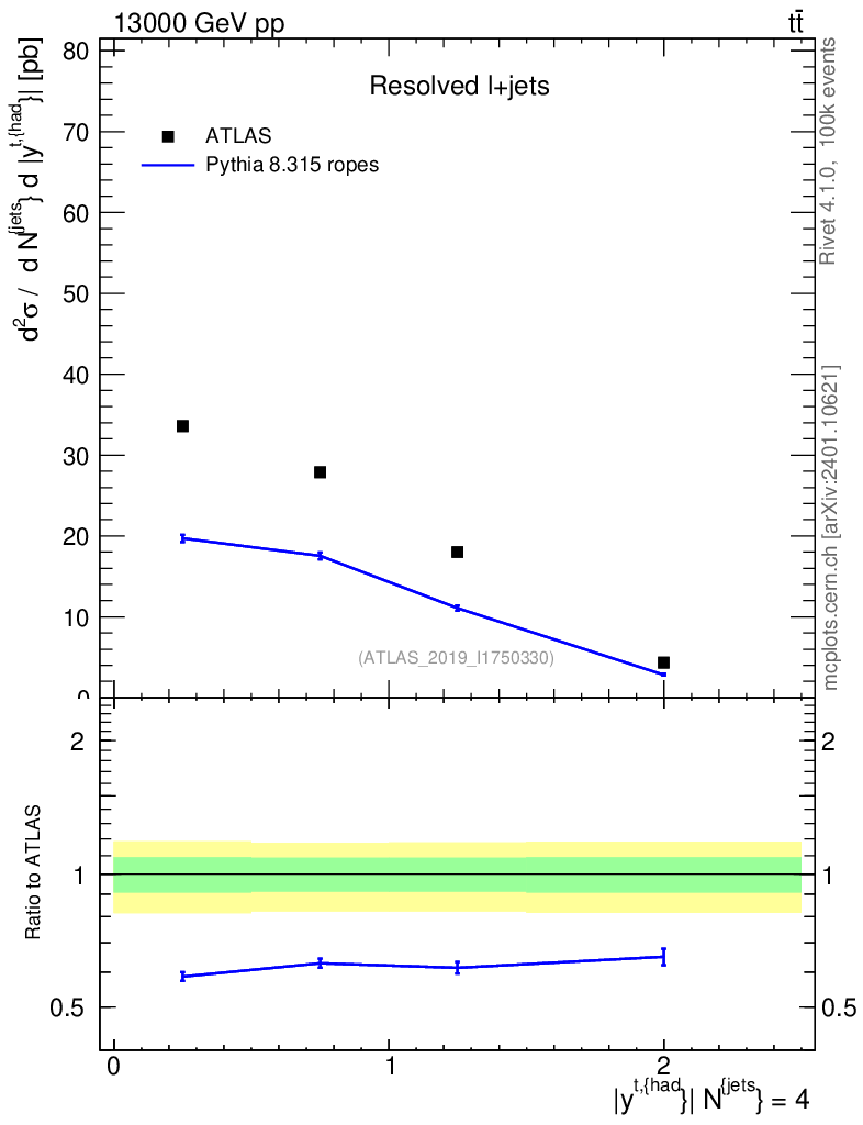 Lines: data, pythia8 8.315 ropes |