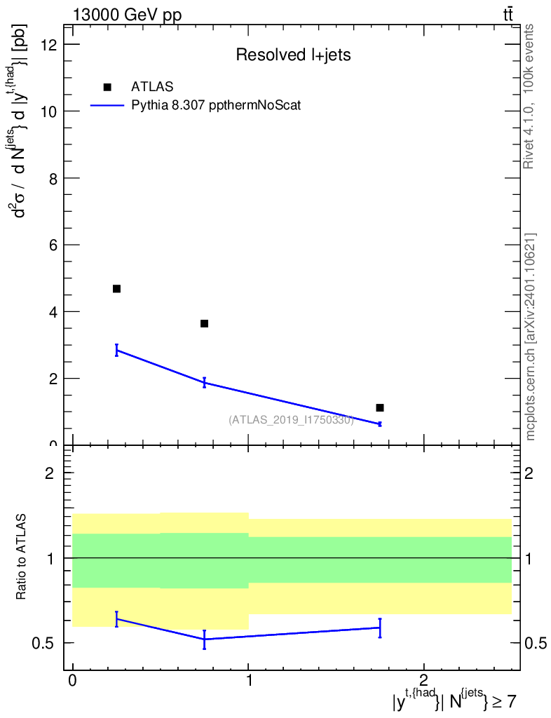 Lines: data, pythia8 8.307 ppthermNoScat |