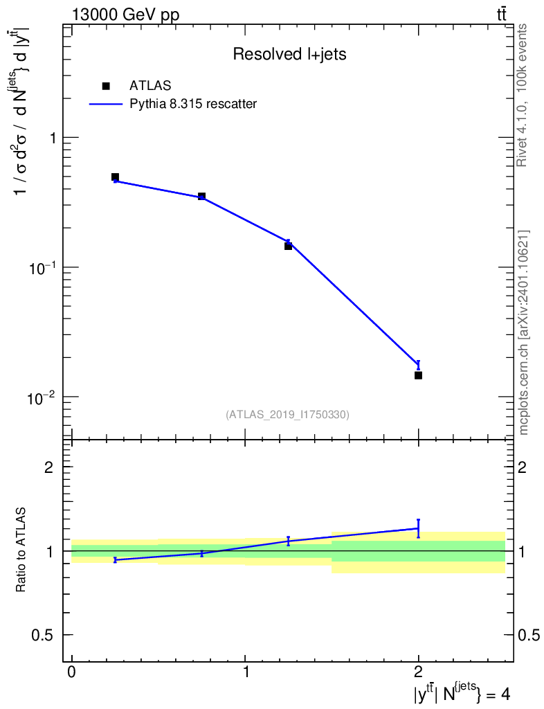 Lines: data, pythia8 8.315 rescatter |