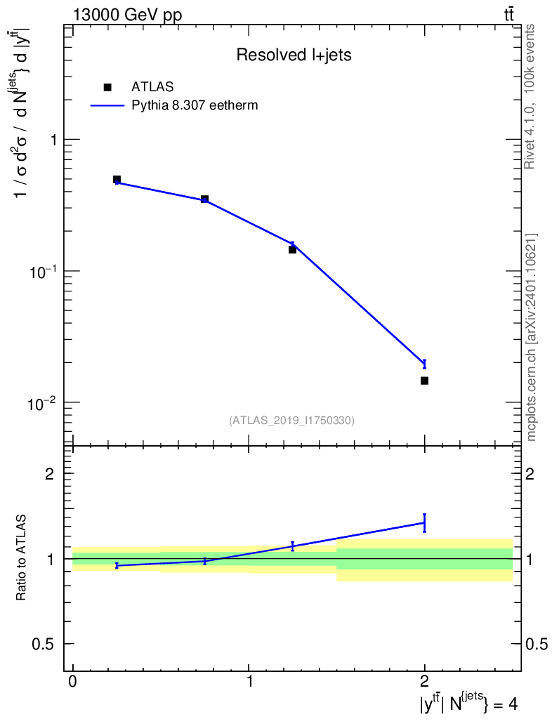 Lines: data, pythia8 8.307 eetherm |