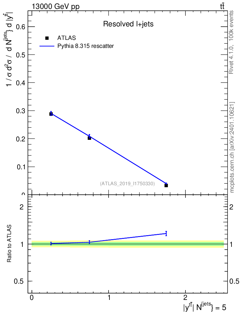 Lines: data, pythia8 8.315 rescatter |