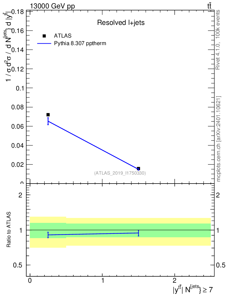Lines: data, pythia8 8.307 pptherm |