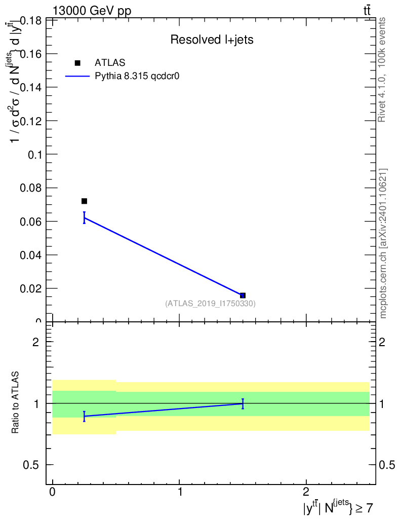 Lines: data, pythia8 8.315 qcdcr0 |