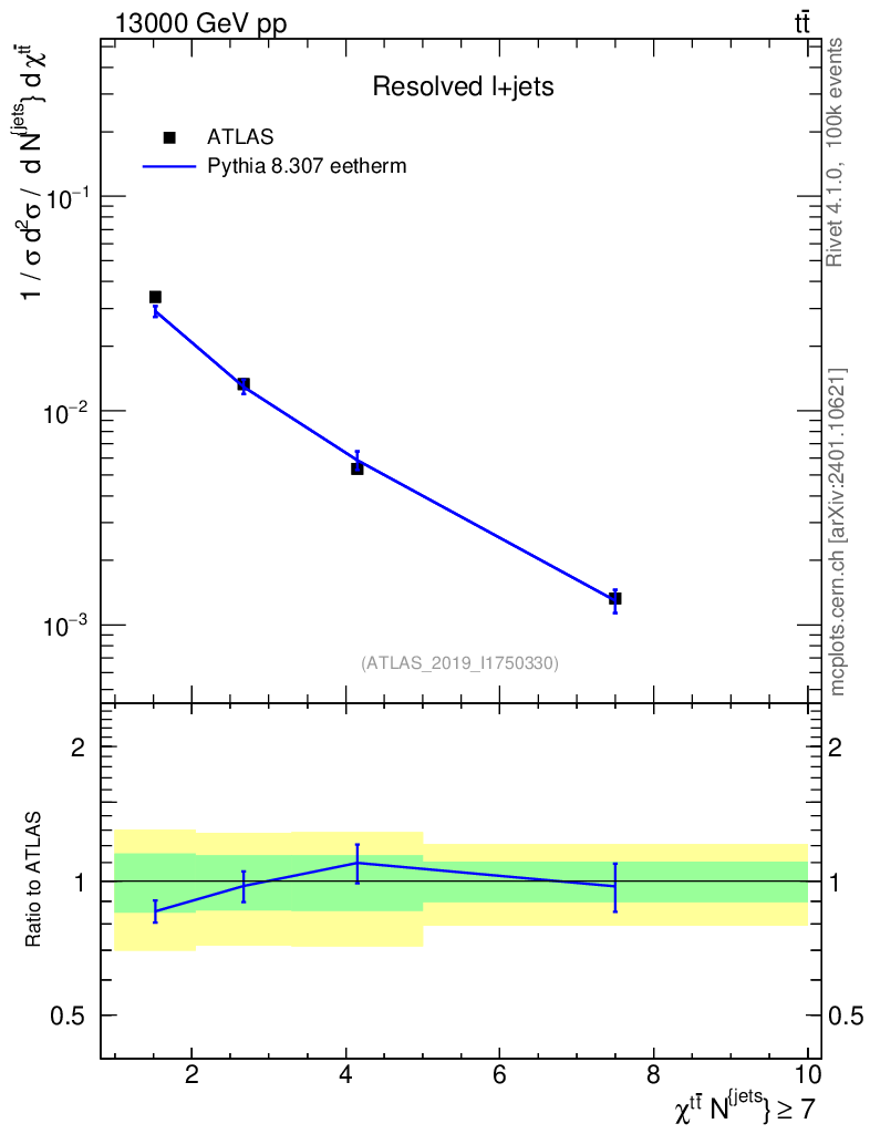 Lines: data, pythia8 8.307 eetherm |
