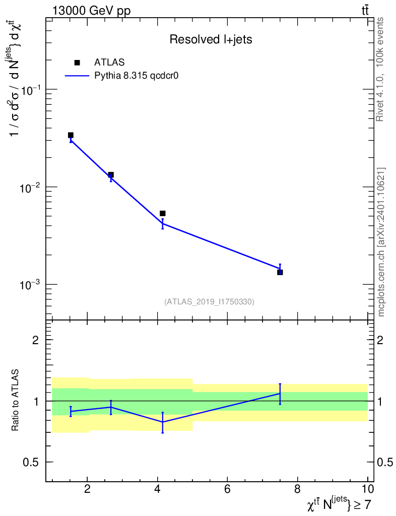 Lines: data, pythia8 8.315 qcdcr0 |