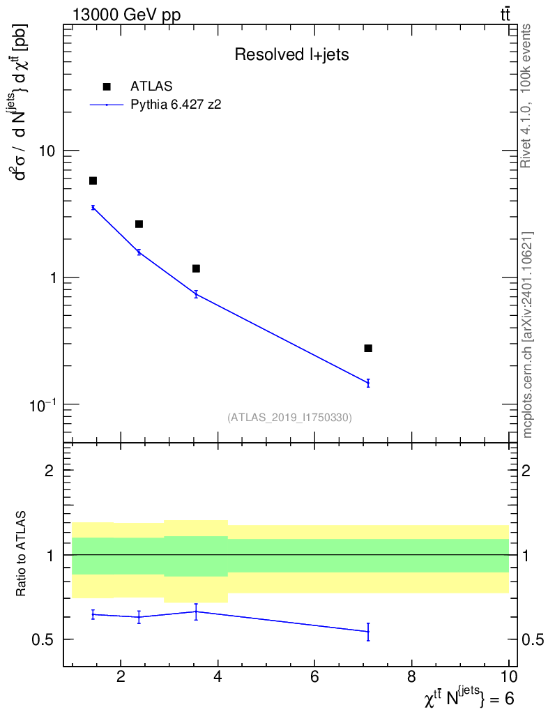 Lines: data, pythia6 6.427 z2 |