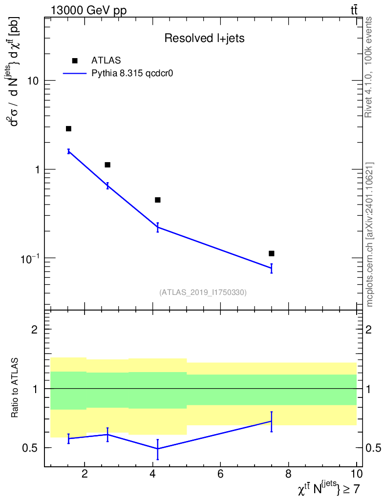 Lines: data, pythia8 8.315 qcdcr0 |