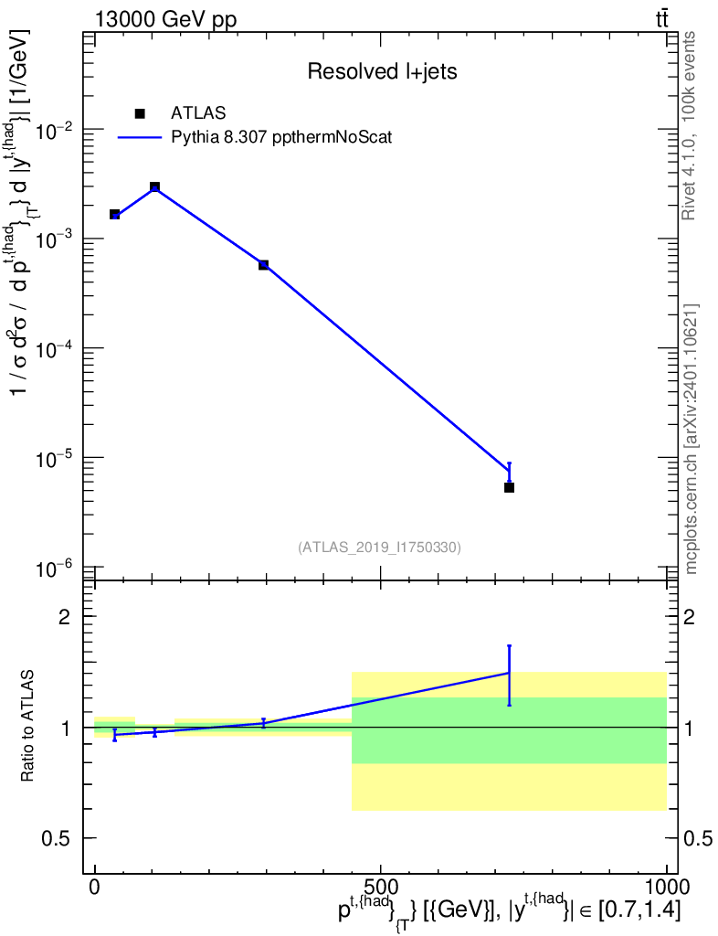Lines: data, pythia8 8.307 ppthermNoScat |