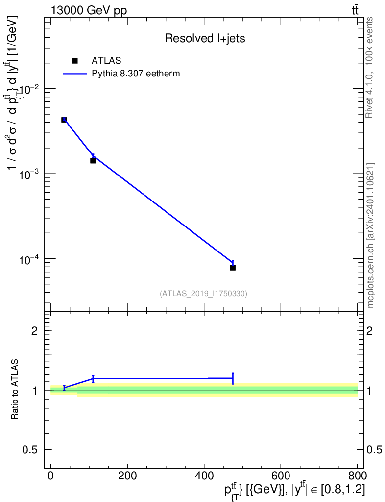 Lines: data, pythia8 8.307 eetherm |