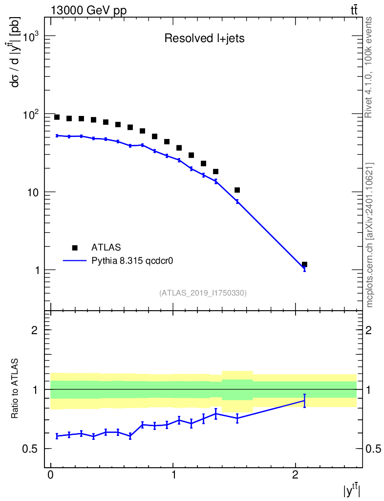 Lines: data, pythia8 8.315 qcdcr0 |
