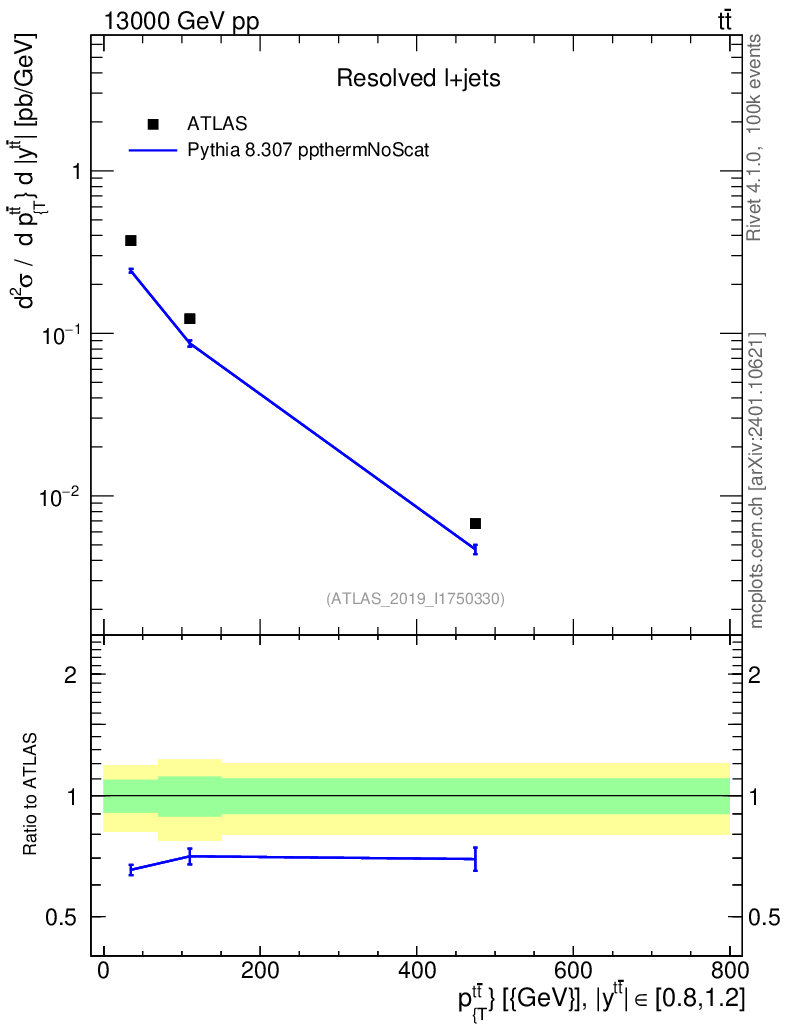 Lines: data, pythia8 8.307 ppthermNoScat |