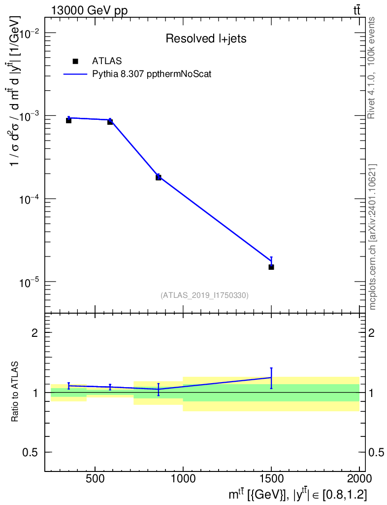 Lines: data, pythia8 8.307 ppthermNoScat |