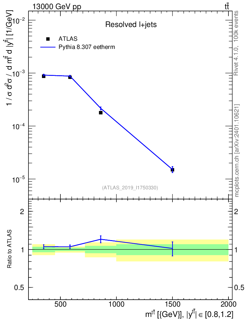 Lines: data, pythia8 8.307 eetherm |