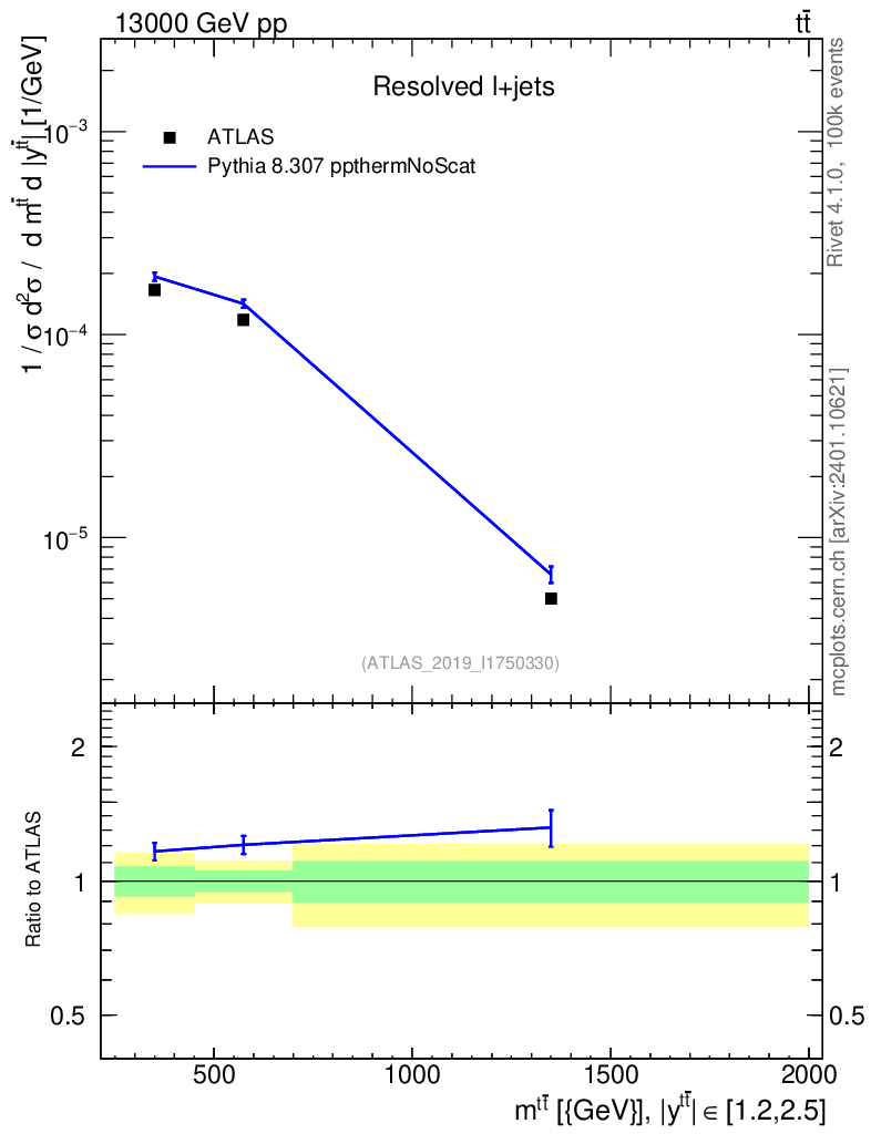 Lines: data, pythia8 8.307 ppthermNoScat |