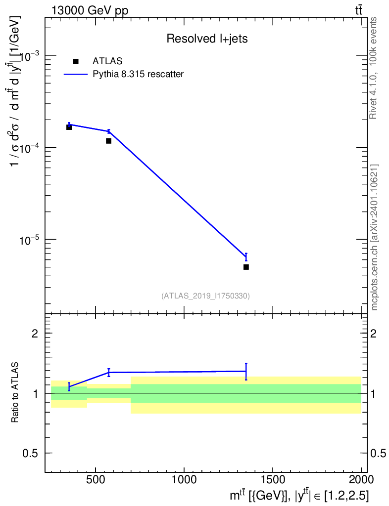 Lines: data, pythia8 8.315 rescatter |