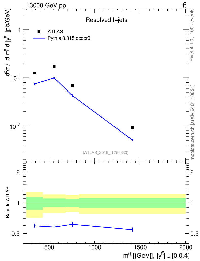 Lines: data, pythia8 8.315 qcdcr0 |