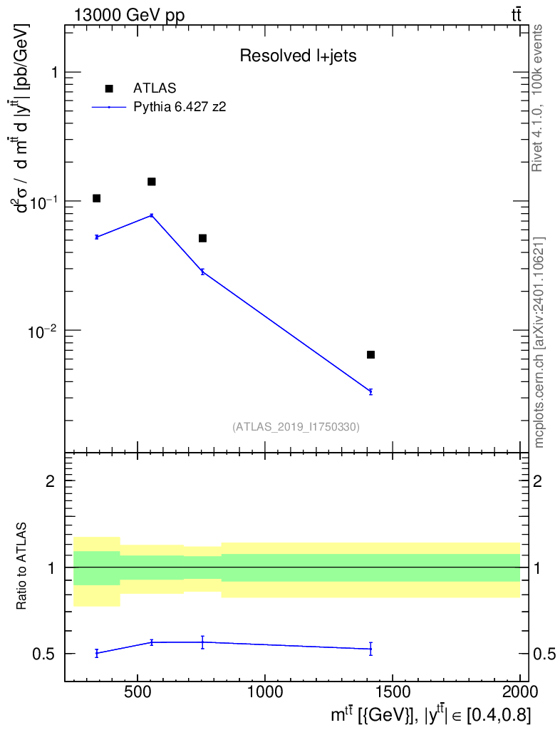 Lines: data, pythia6 6.427 z2 |