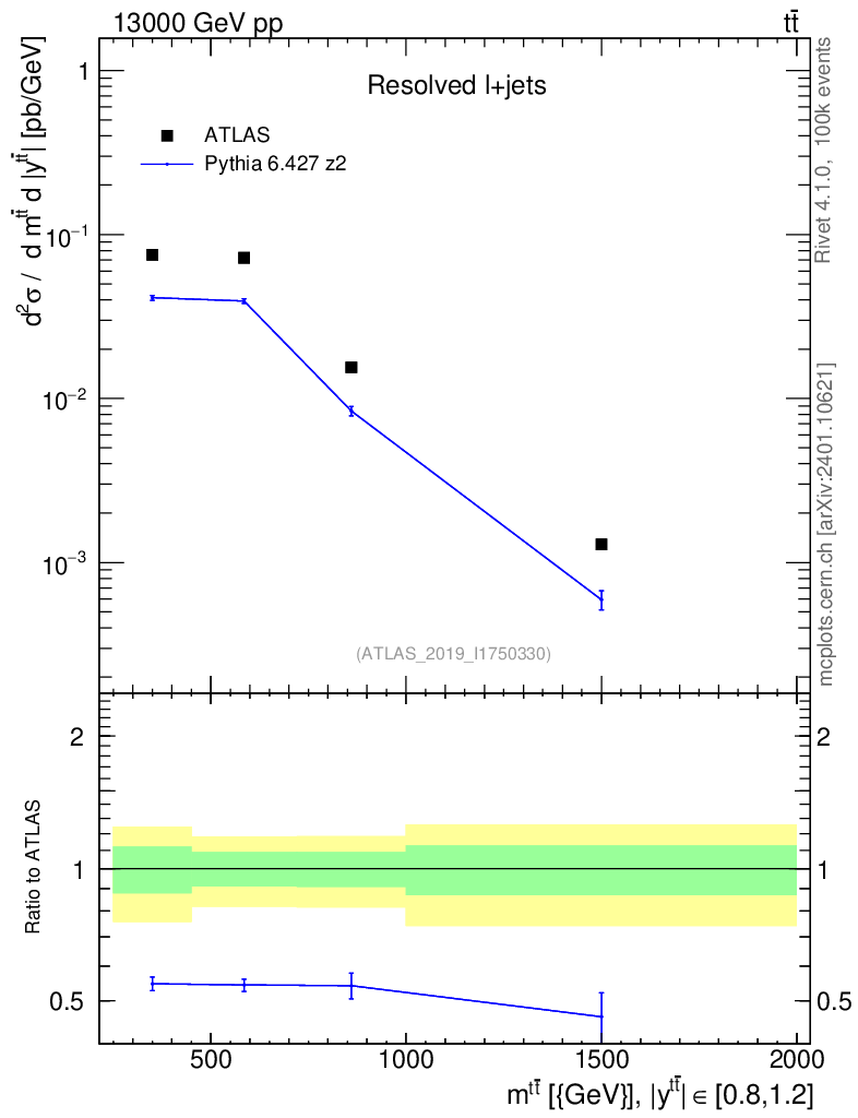Lines: data, pythia6 6.427 z2 |
