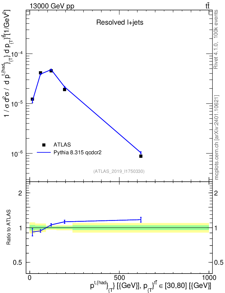 Lines: data, pythia8 8.315 qcdcr2 |