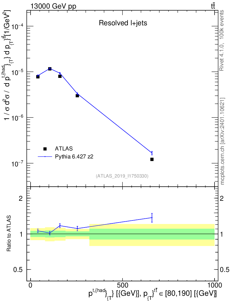 Lines: data, pythia6 6.427 z2 |