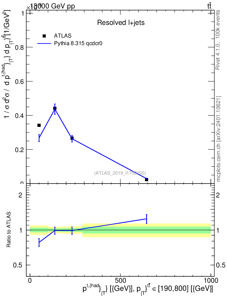 Lines: data, pythia8 8.315 qcdcr0 |