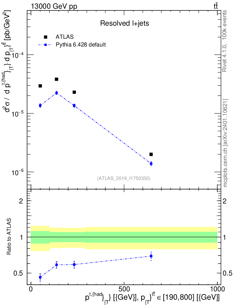 Lines: data, pythia6 6.428 default |