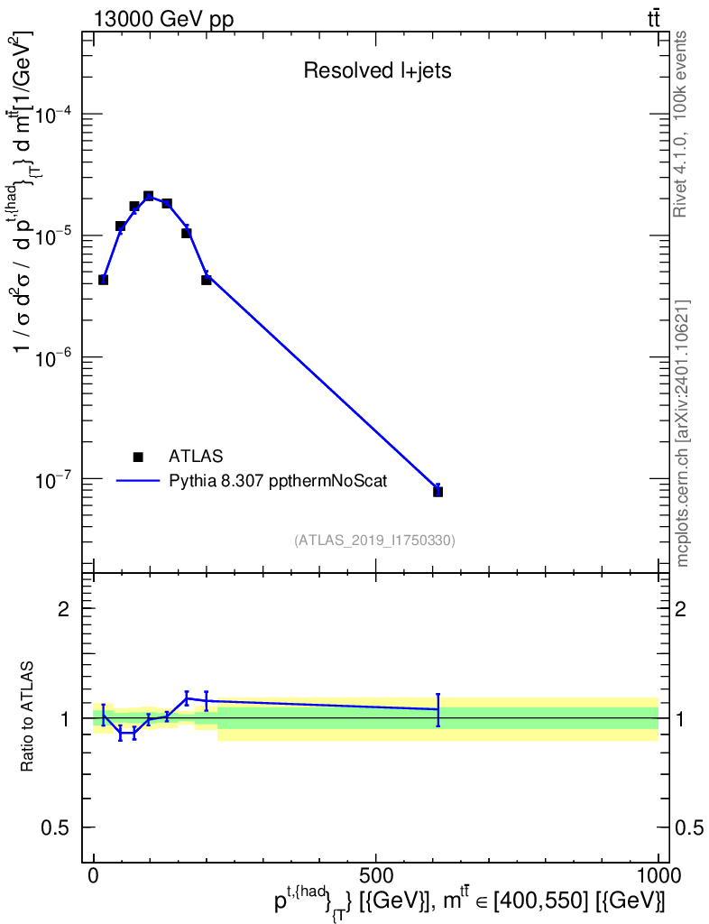 Lines: data, pythia8 8.307 ppthermNoScat |