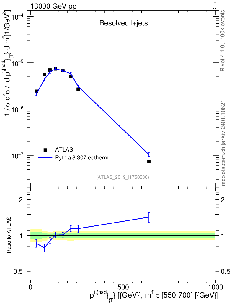 Lines: data, pythia8 8.307 eetherm |