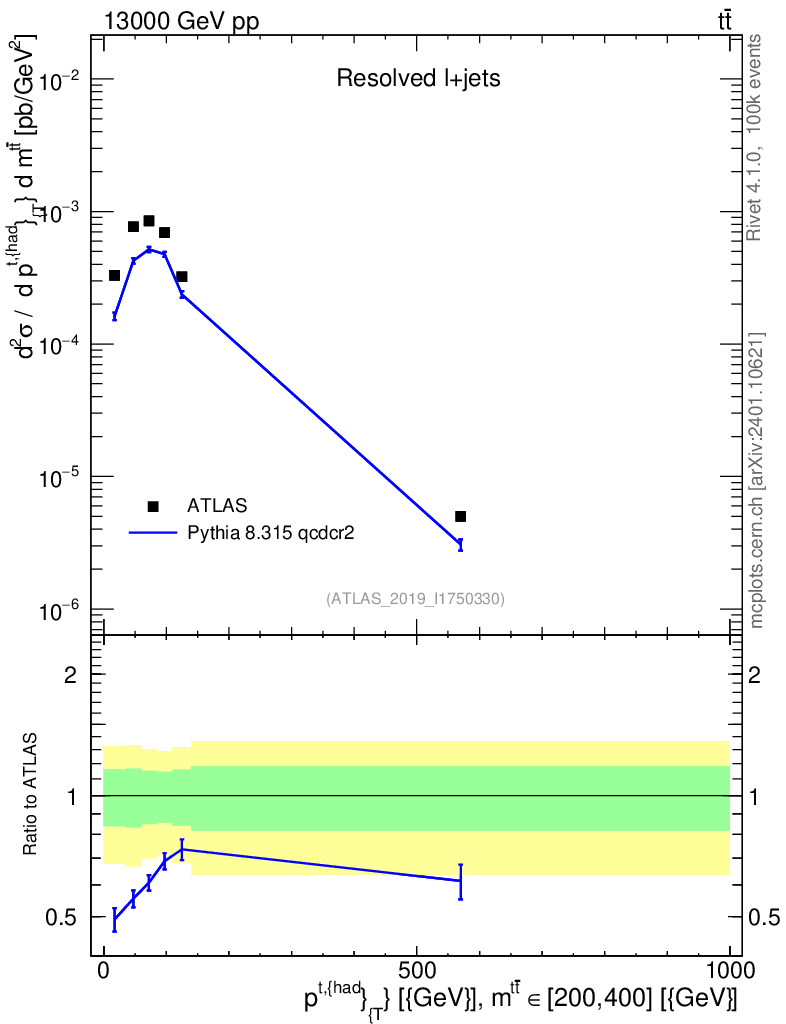 Lines: data, pythia8 8.315 qcdcr2 |