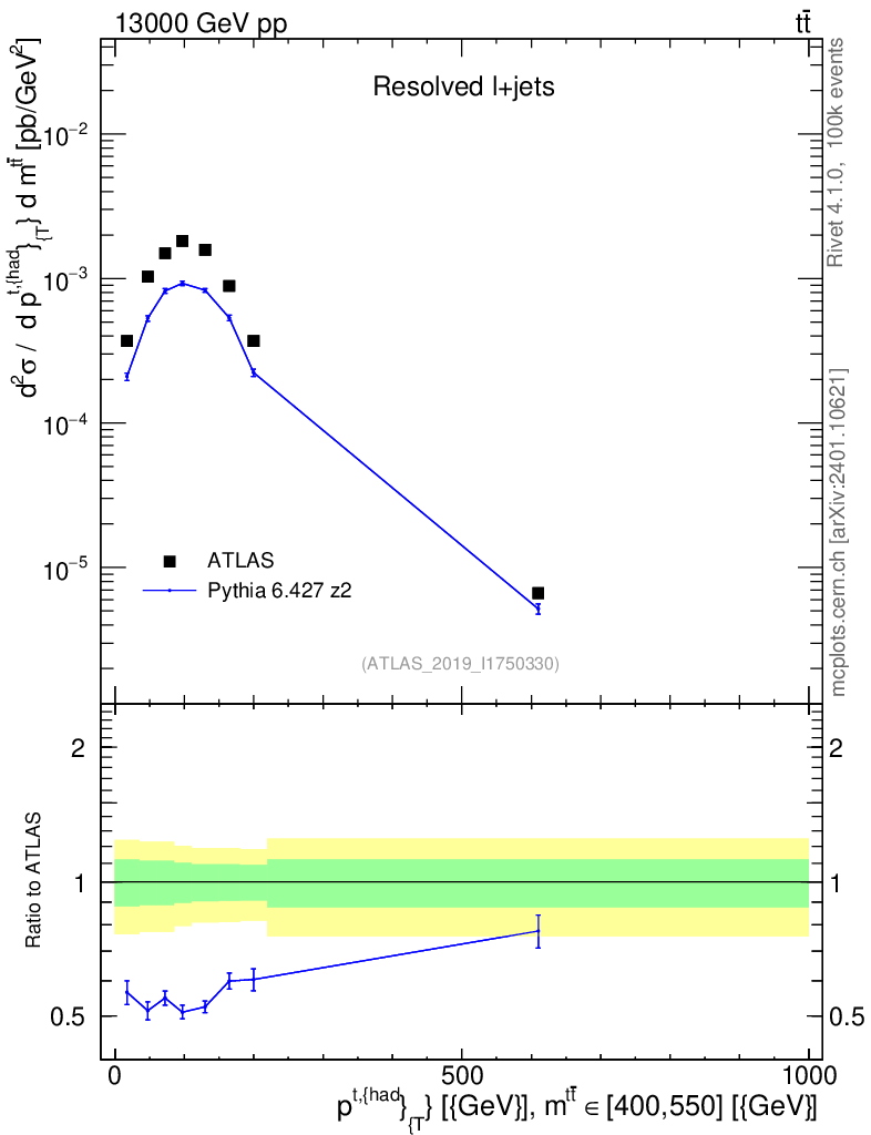 Lines: data, pythia6 6.427 z2 |