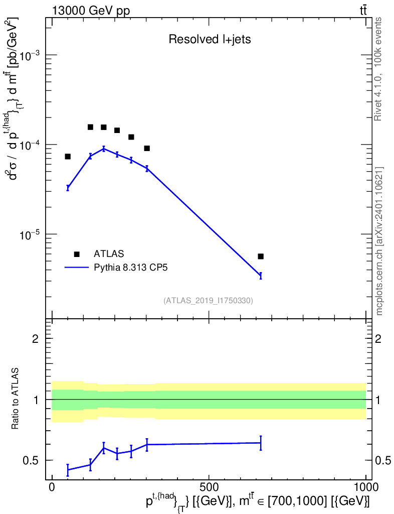 Lines: data, pythia8 8.313 CP5 |