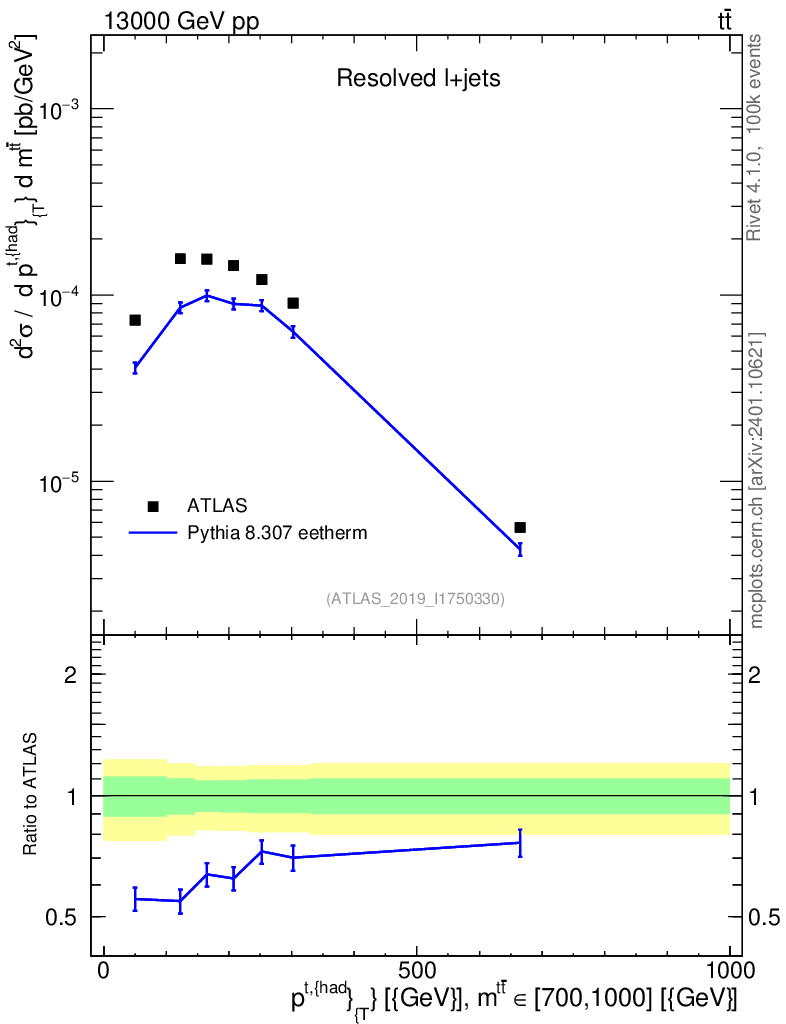 Lines: data, pythia8 8.307 eetherm |