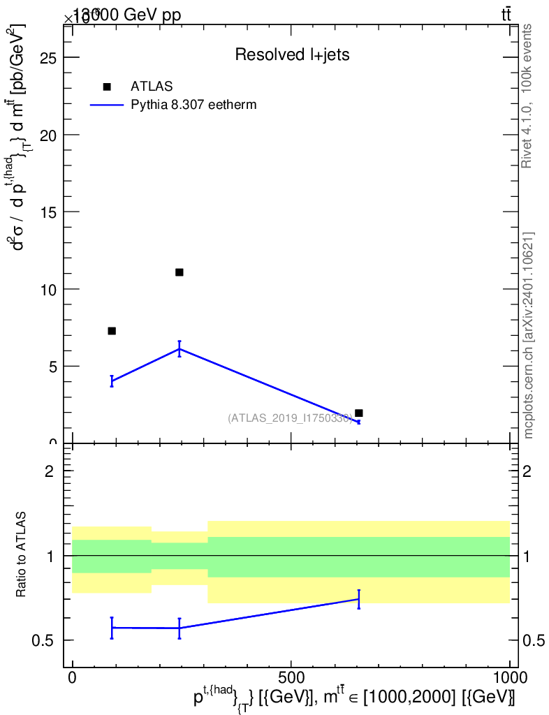 Lines: data, pythia8 8.307 eetherm |