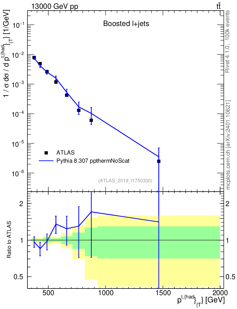 Lines: data, pythia8 8.307 ppthermNoScat |