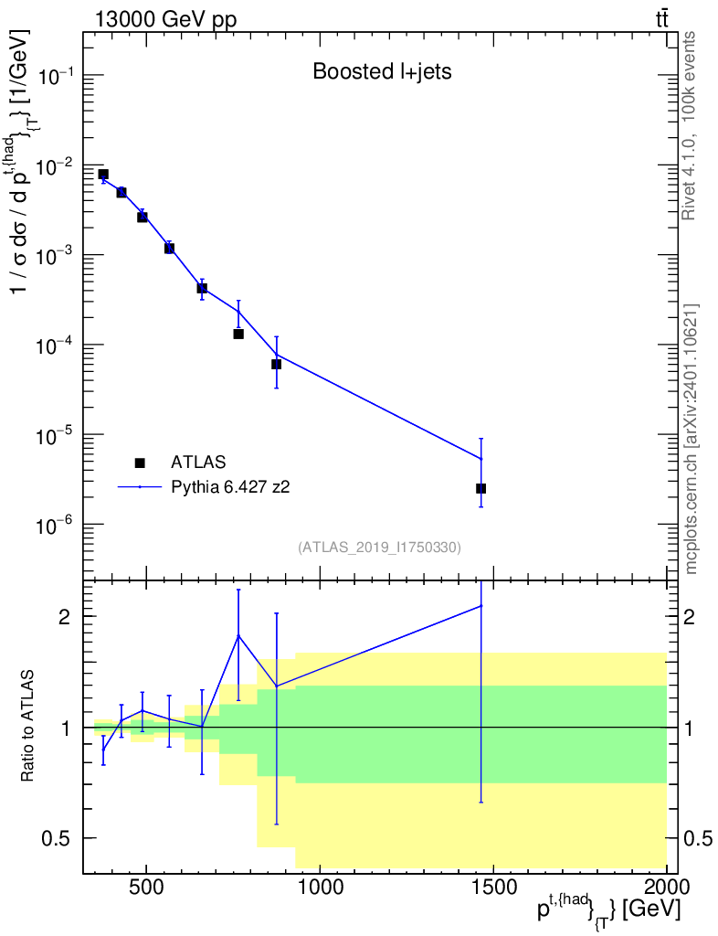 Lines: data, pythia6 6.427 z2 |