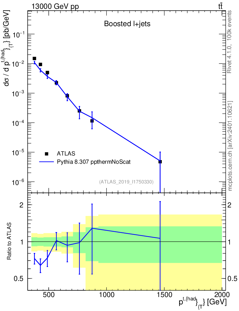 Lines: data, pythia8 8.307 ppthermNoScat |