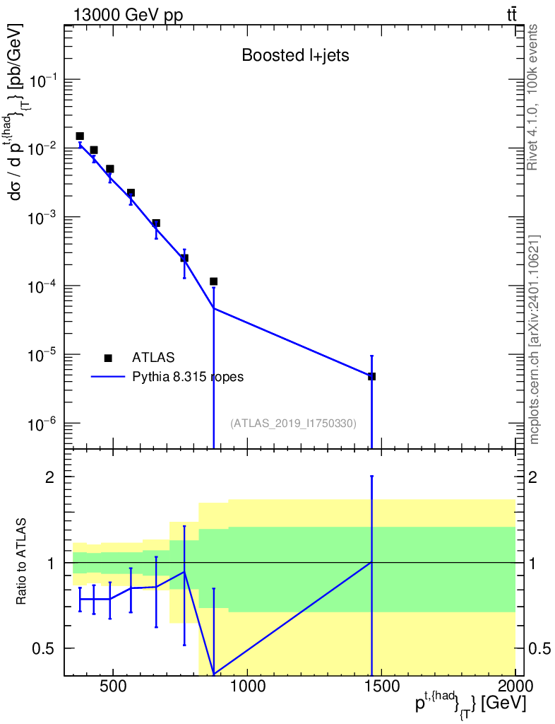 Lines: data, pythia8 8.315 ropes |