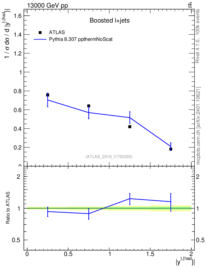Lines: data, pythia8 8.307 ppthermNoScat |