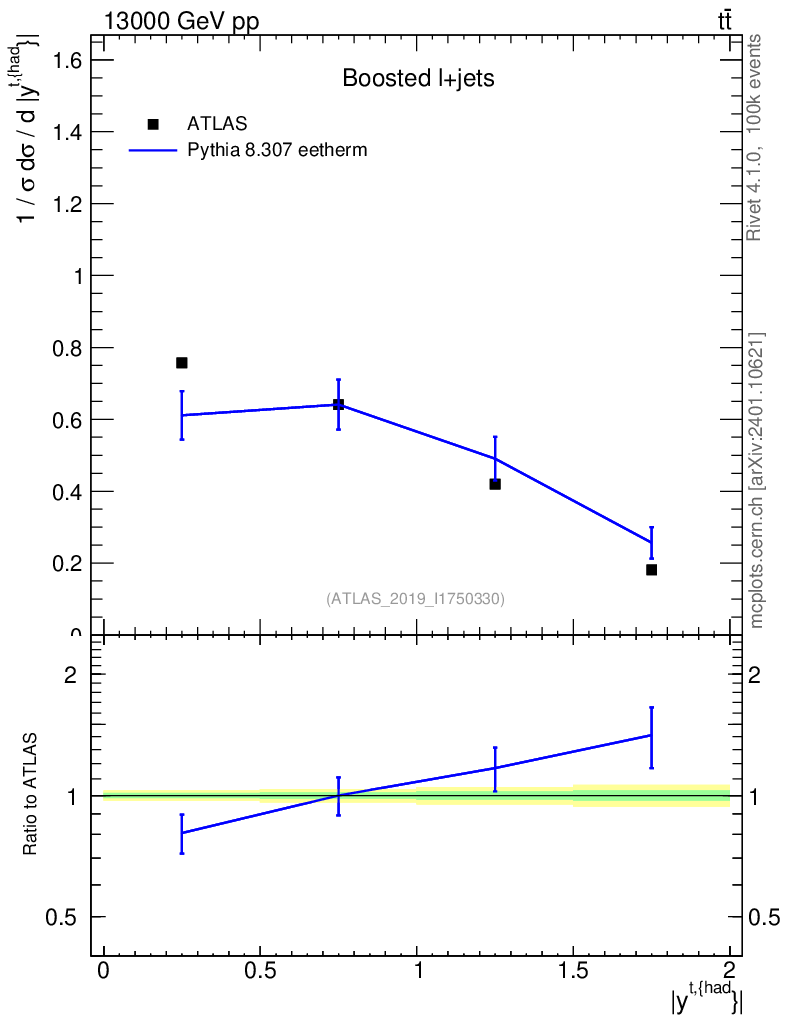 Lines: data, pythia8 8.307 eetherm |