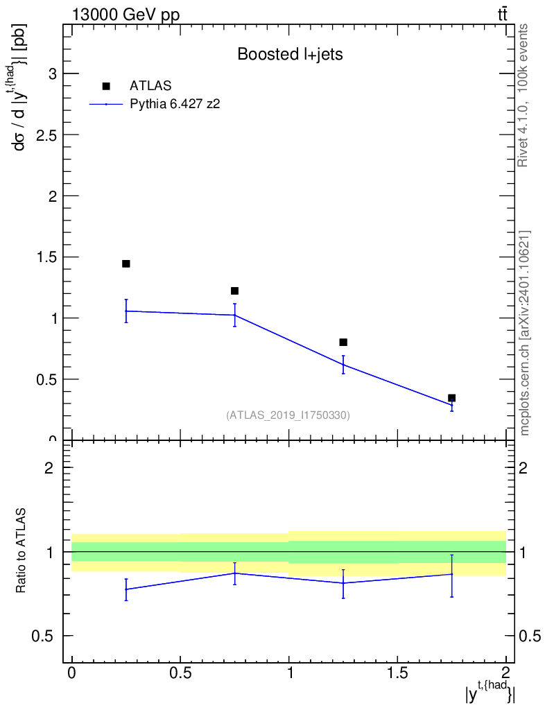 Lines: data, pythia6 6.427 z2 |