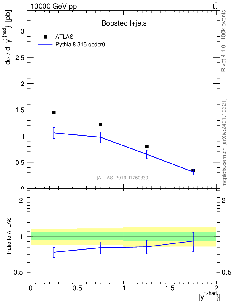 Lines: data, pythia8 8.315 qcdcr0 |