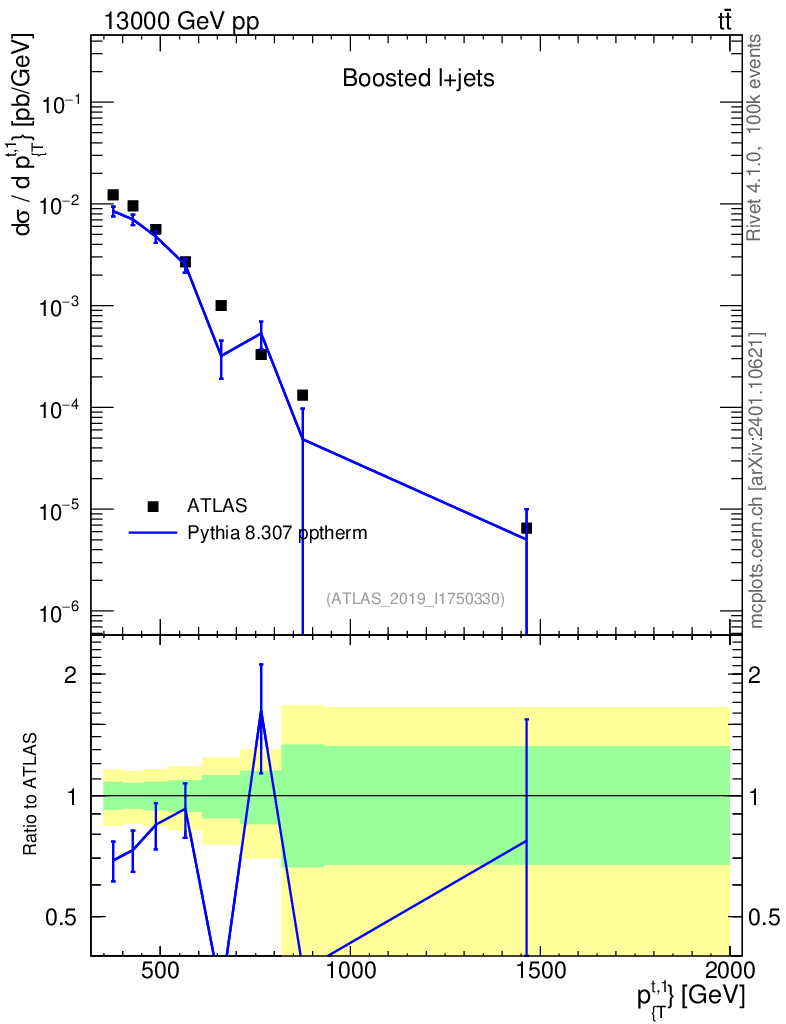 Lines: data, pythia8 8.307 pptherm |