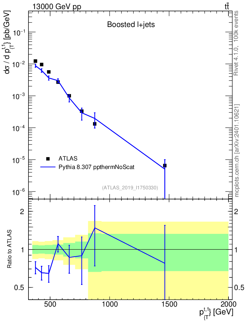 Lines: data, pythia8 8.307 ppthermNoScat |