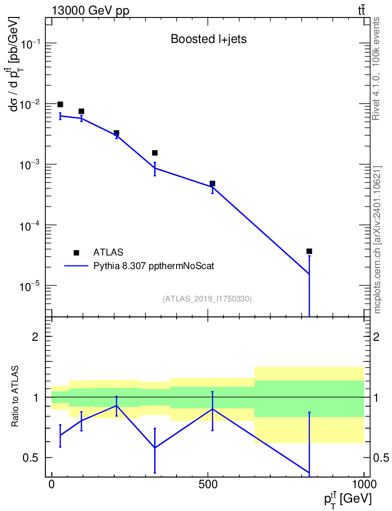 Lines: data, pythia8 8.307 ppthermNoScat |